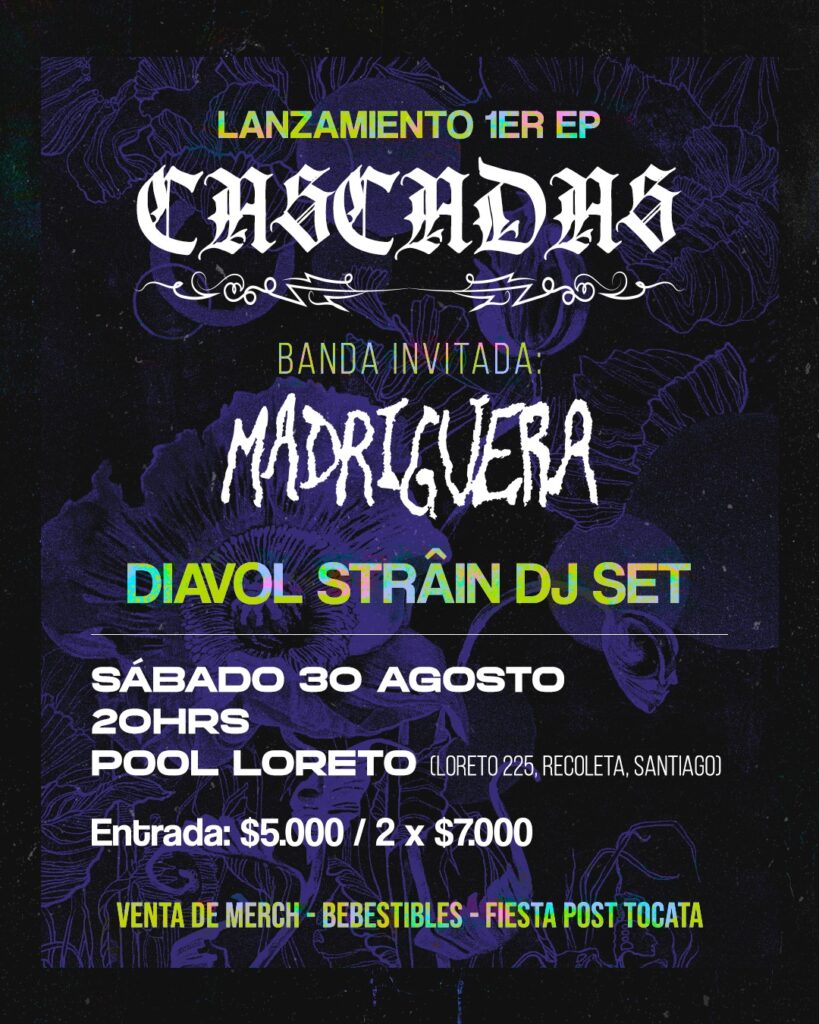 La agrupación nacional de la Quinta Región, Cascadas, estrenó su primer EP homónimo, una propuesta de rock alternativo que transita entre el grunge y el dream pop, marcada por la influencia de referentes noventeros como Alice in Chains, Cocteau Twins y Kim Gordon, prometiendo una vuelta a la época dorada del rock noventero. Como parte de […]
